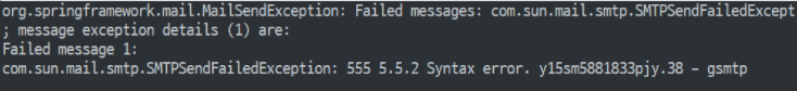 SMTPSendFailedException: 555 5.5.2 Syntax error